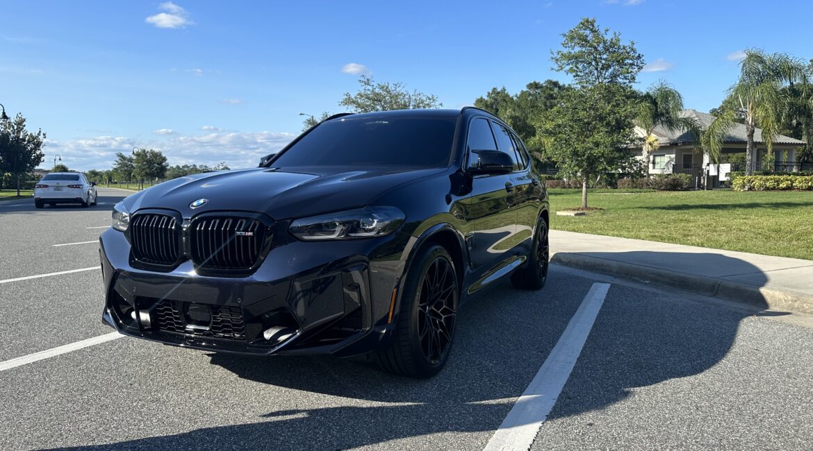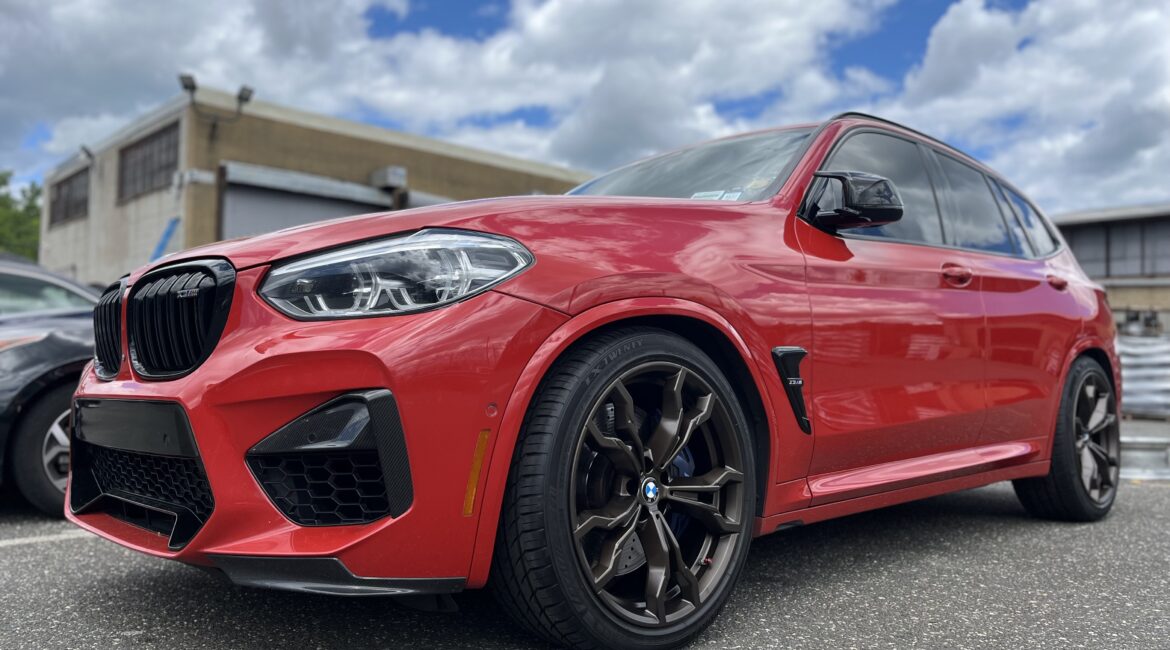 2021 BMW X3M Competition with executive package finished in Toronto red with matching interior. Wheels are powder coated matte metallic bronze. Everything is original on this vehicle except for 20% tints on all windows except the windshield.