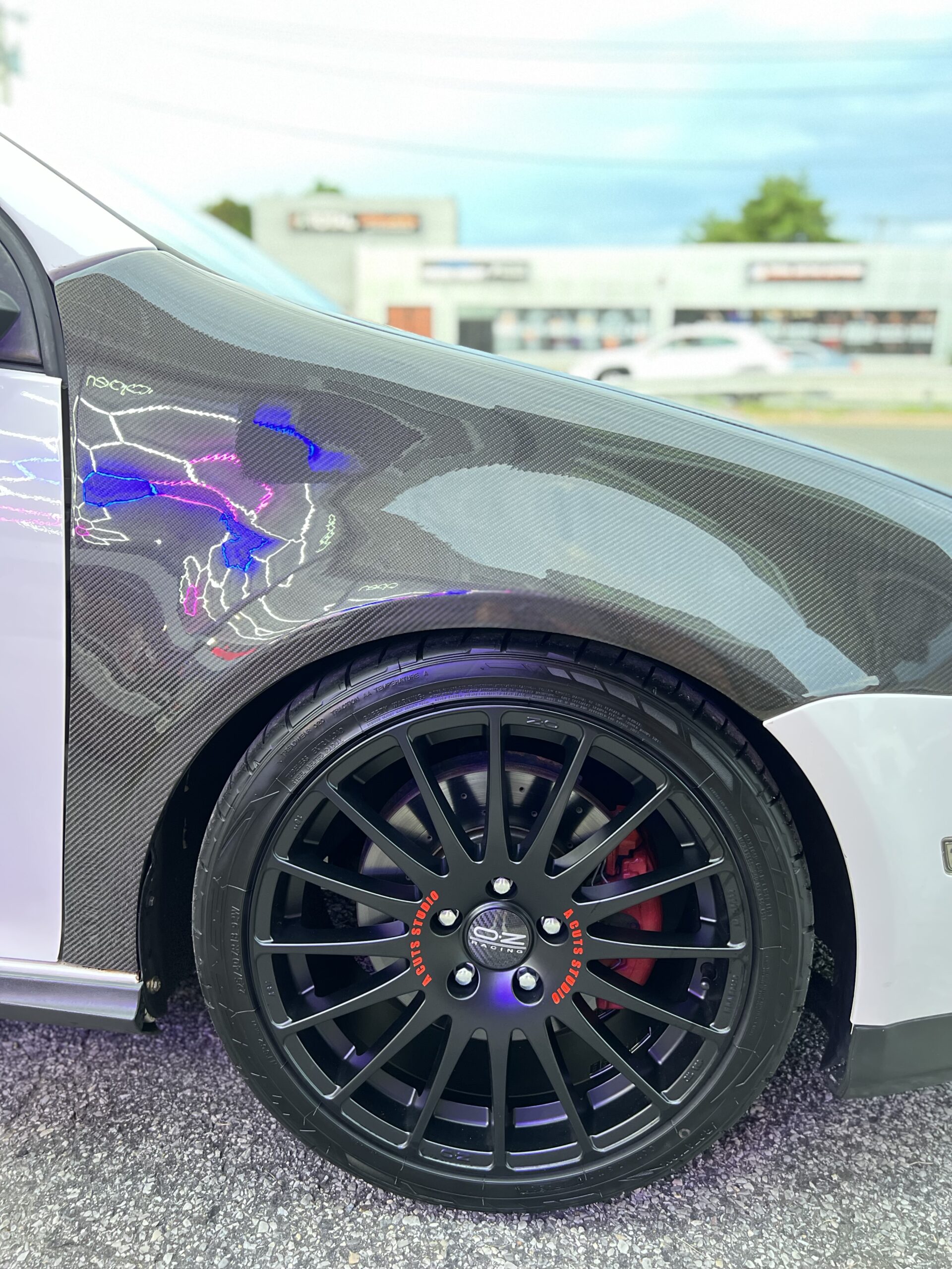 White with a lot of mods in carbon fiber mods in the engine fbo 93 tuned