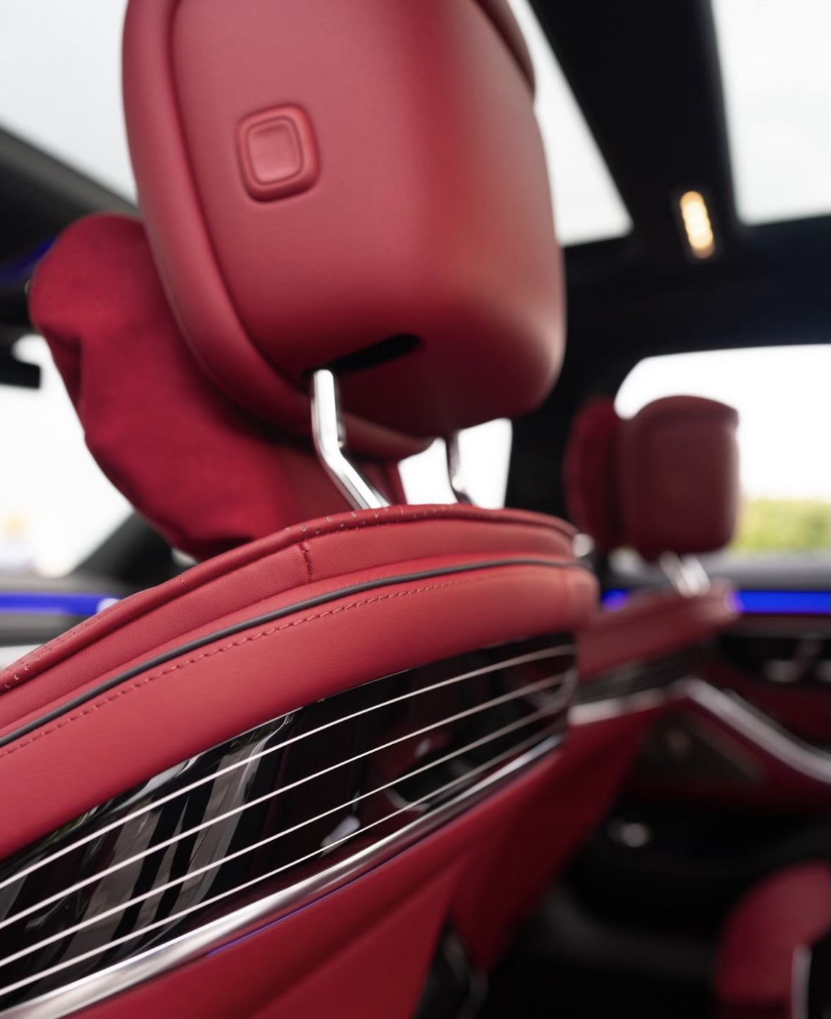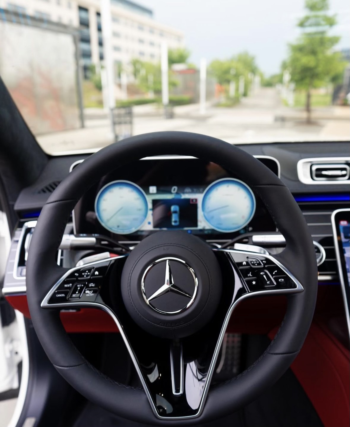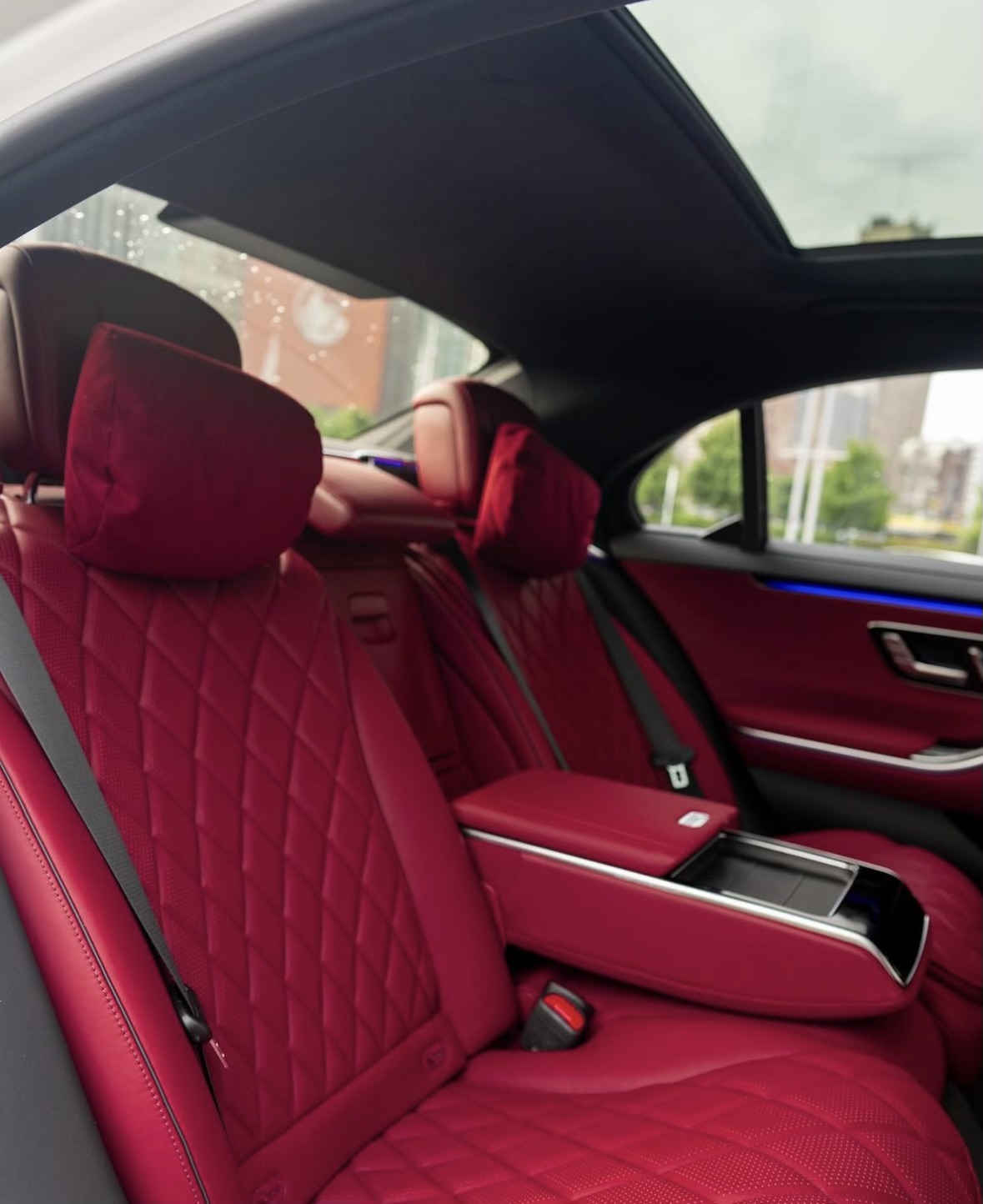 Comfortability at its finest ! 2021 Mercedes Benz S580. White exterior and a red interior.